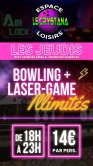 Notre BOWLING 8 pistes est adapté à tous, à partir de 5 ans grâce aux rampes, tobbogans et au système de bumpers. Venez passer un moment convivial sur les pistes (jusqu'à 7 joueurs par piste) en famille, entre amis ou entre collègues! Notre espace loisirs est climatisé donc peu importe la météo, il fait toujours bon jouer au bowling! Les soirs de week-end, ambiance fluorescente, boule à facettes et jeux de lumières de dernière technologie!